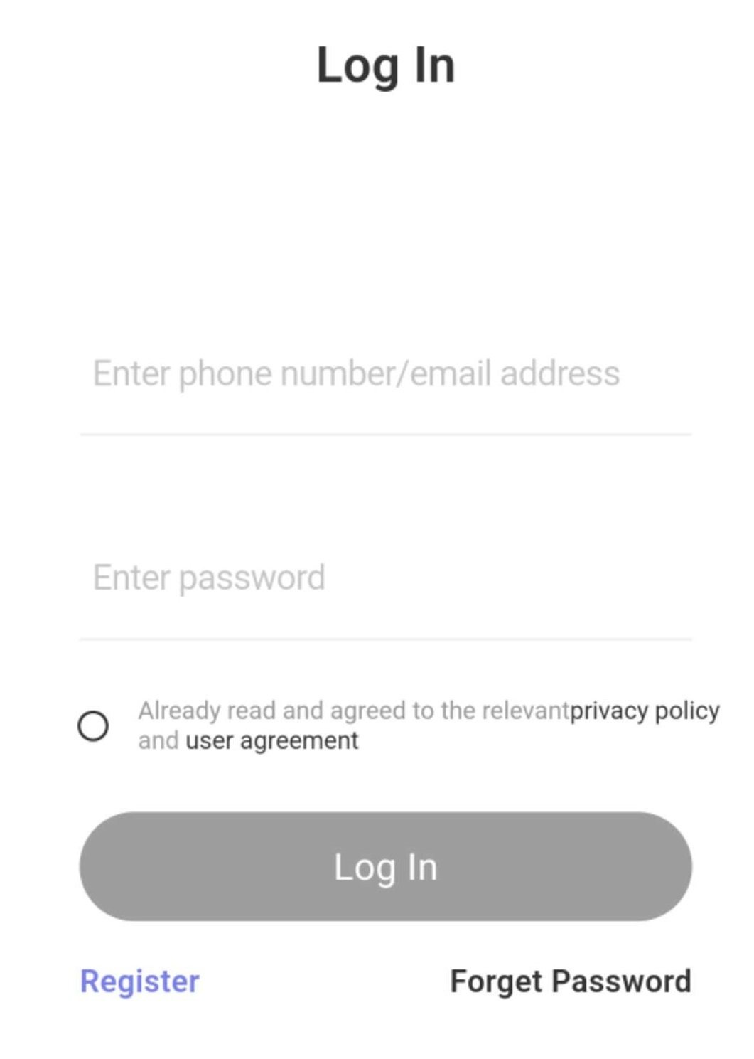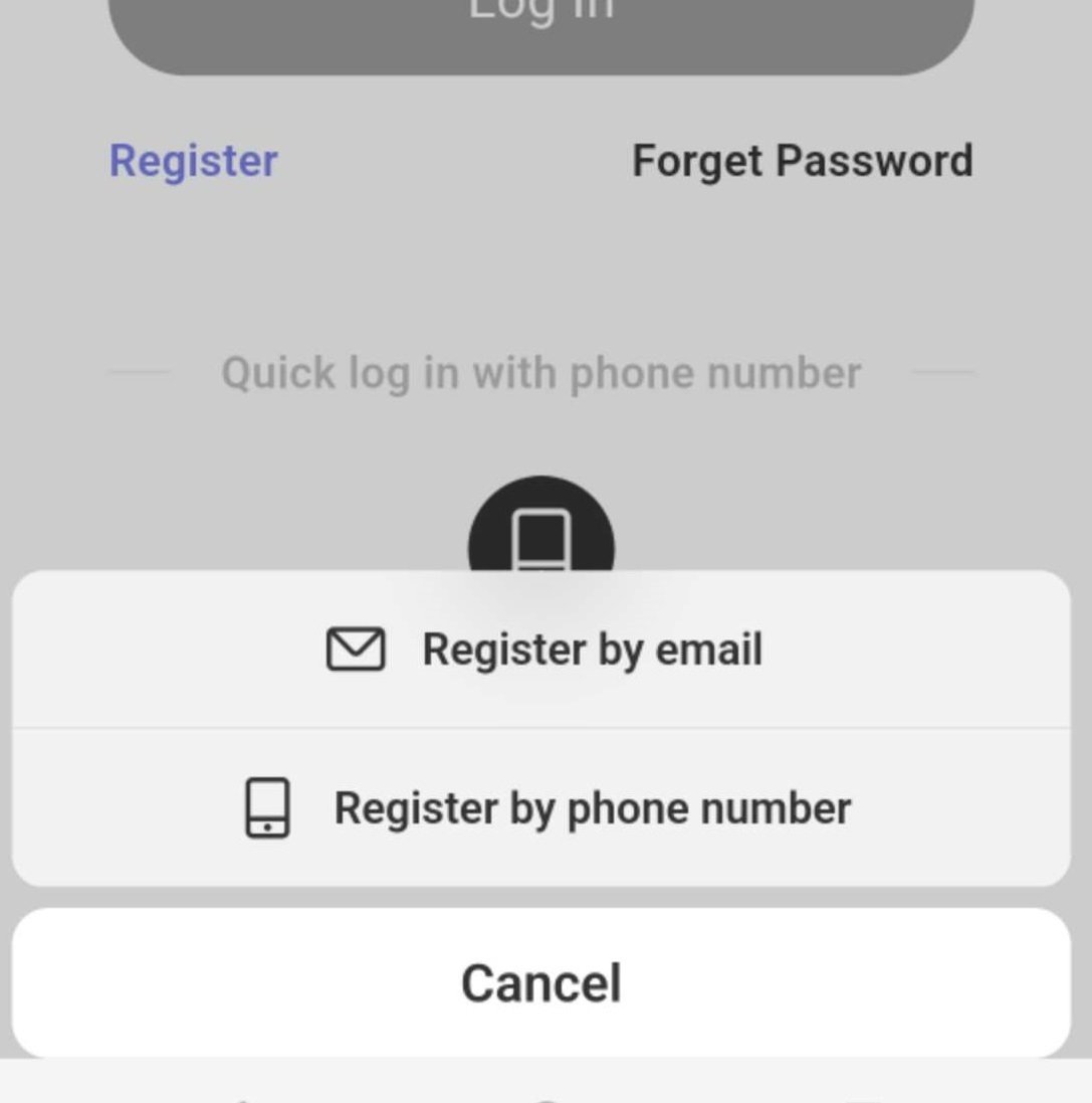 ユーザーを新しく登録する場合、Log Inボタン左下のRegisterをタップします。