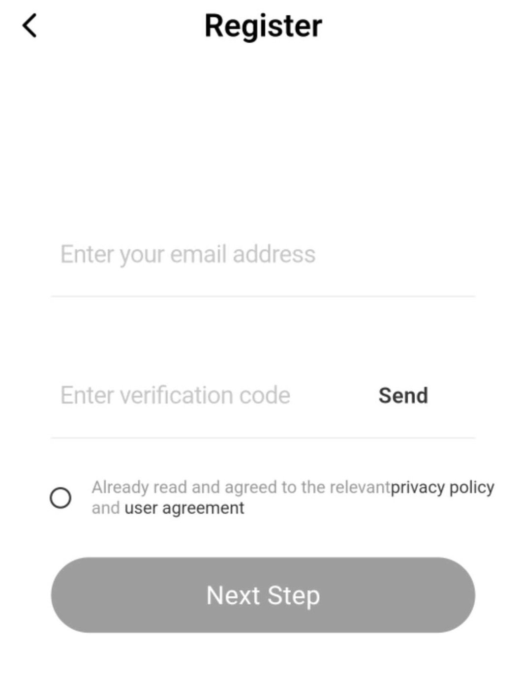 すると、Verification Codeがメールに届きますので、その番号を入力し、プライバシーポリシーへの同意を押してNext Stepに進み、ユーザー登録を行います。